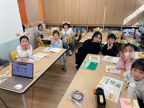 - 1차시 '화폐가 태어났어요'차시 때 시간이 없어 못했던 머리띠 만드는 활동을 아이들과 지폐 역할을 나누어 만들어 보았고 다같이 기념 사진도 찍었습니다. 그리고 2차시 빙고 게임으로 '교실에 있는 물건 중 돈으로 살 수 있는 것'이라는 주제와 '저번 시간, 이번 시간에 나온 수업 단어' 라는 주제로 다시 복습할 수 있도록 도와 2차례 빙고 게임을 하였습니다