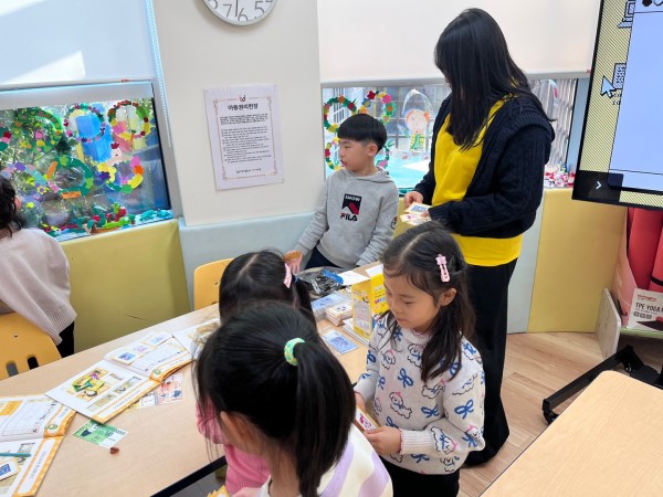 - '화폐가 태어났어요' 단원 명을 아이들과 같이 읽어보고 '사라진 돈'이라는 이야기에 등장하는 6명의 인물을 아이들로 구성해 함께 이야기를 생동감 있게 읽어보았습니다. 또한 그 뒤에 나오는 '사라진 돈'의 퀴즈들을 아이들에게 생각을 묻고 답하는 시간으로 물물교환에 관한 간단한 이론 이해와 화폐의 중요성, 현재 화폐 종류를 알아보며 미래에는 무슨 화폐를 쓰게 될건지 까지 다함께 생각을 공유하는 시간으로 1교시를 마쳤습니다.