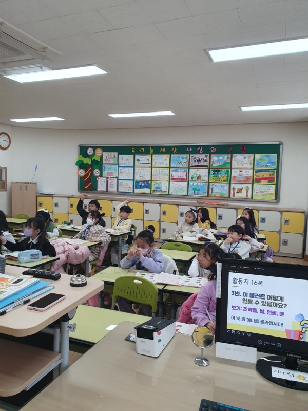 돈으로 살 수 있는 것과 없는 것에 대한 설명을 통해 돈으로 살 수 없는 것에 대한 가치에 대하여 생각해보고 돈으로 살 수 있는 물건을 얻기 위해 일을 하고 하고 싶은 일과 장래희망에 대하여 알아보았다. 2교시에는 빙고 게임을 통해 일상생활에서 살 수 있는 물건에 대하여 생각해보았다.