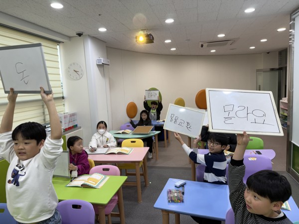 6차시, 지난 5차시에서 배웠던 은행의 역할에 대해 추가적으로 학습하는 시간을 가졌습니다. 환전,입출금, 지폐 교환, 대출과 예금 등 은행에서 이용 가능한 서비스들을 배우고 발표도진행해보았습니다. 또한 통장을 직접 만들어보는 시간을 통해 통장에 어떤 내용들이 포함되는지 알 수 있었습니다. 쉬는 시간 이후 2교시에는 6차시에 구성된 복습 퀴즈 골든벨을 진행했습니다. 화이트보드와 보드마카를 이용해 아이들이 더욱 즐겁게 참여할 수 있었고 복습을 통해 그동안 배웠던 내용들을 다시 한 번 상기시켜줄수 있는 시간이었습니다!