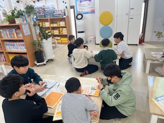 4) 교육내용 : 네번째 수업으로 이지연 단원 혼자 수업을 진행하였습니다. 시쿠리니씨 동화 구연을 진행하였습니다. 동화책을 다 읽고 난 후, 직업에 대해 아이들과 함께 이야기를 나누고 등록증을 만들어 발표하는 시간을 가졌습니다.