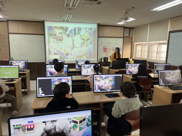수업 전에 시연해 보면서 저학년 아이들에게는 컴퓨터 조작이 어려울 거라고 생각돼서 걱정을 많이 했습니다. 물론 초반에는 아이들이 어려워했지만, 선생님들의 이야기를 듣고 조작 방법을 알아가며 끝날 때쯤엔 익숙하게 조작해서 마지막까지 잘 마칠 수 있었습니다.