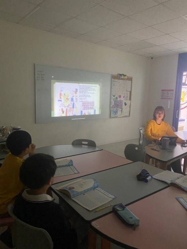1교시: 1교시는 책을 읽어주는 활동을 진행했습니다. 아이들이 이해가기가 어려운 이야기여서 좀 더 쉽게 이해시키는 것에 초점을 두고 수업을 이예은 단원이 진행해주었습니다.