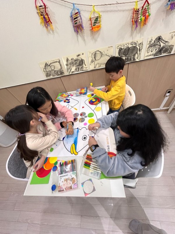 조별로 모여 색종이와 홀로그램 스티커를 이용하여 무지개 물고기 꾸미기를 진행함. 개인별로 나누고 싶은 것, 이전에 나누어보며 기뻤던 기억 들을 적고 발표하는 시간을 가짐