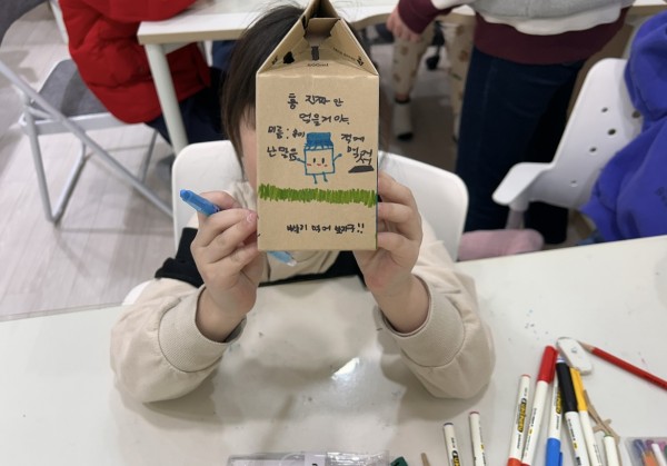 우유팩 저금통을 만들며 돈을 저축해서 하고 싶은 것, 사고 싶은 것 등을 자유롭게 이야기 하는 시간을 가짐.