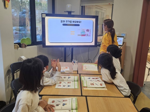 1교시(이승연) : 3차시 수업에서는 ‘똑똑하게 돈 쓰는 법’이라는 주제로 수업을 진행하며 돈의 크기와 돈을 조합하는 여러 가지 방법에 대해 알아보는 시간을 가졌습니다. 돈의 종류를 알아보고, 돈의 크기와 물건의 가격을 비교하였으며 이를 바탕으로 돈 조합하기 게임을 진행하였습니다.