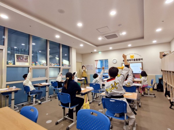꼬마악어의 지갑을 설명할 때는 고민이 많았습니다. 단순히 선생님이 혼자 책을 읽는 것은 친구들이 지겨워하기 쉽기 때문입니다. 그래서 꼬마악어의 지갑을 읽어주는 유튜브 영상을 틀어줄까 고민했었는데 그것 또한 소통하는 수업이 아니라 그저 '일방적인 전달'로 끝나는 수업이 될 수 있기에 소통하는 수업을 지향하는 폴라리스 봉사단의 정체성을 헤칠 수 있다고 생각했습니다.그래서 저는 [연극]이라는 방법을 사용했습니다. 각 등장인물을 간단히 소개하고 친구들에게 연극처럼 실감나게 읽어줄 것을 당부했습니다. 어린 친구들도 연극이라고 생각하니 훨 생동감있고 집중하여 책을 읽는 모습을 보였습니다. 또한 책을 읽고 난 뒤에는 비타민을 주는 퀴즈를 할 것임을 공지해 친구들을 집중 시켰습니다.