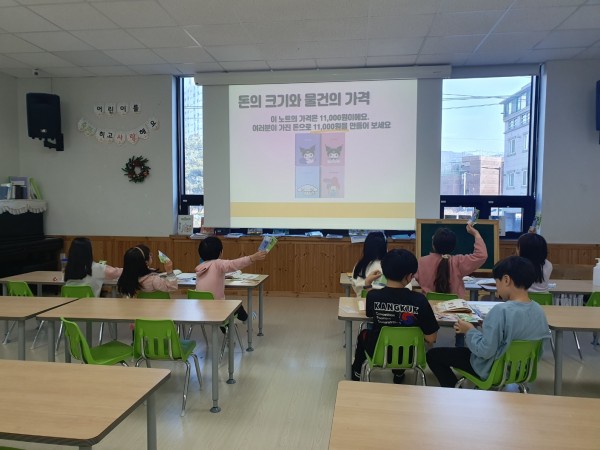 3번째 시간에는 동전과 지폐의 크기와 똑똑하게 돈을 쓰는 방법에 대해 공부하였다. 그리고 그 돈을 조합하는 여러가지 방법을 게임을 통해 알아보는 시간을 가졌다. 아이들이 정말 필요하고 오래 쓸 수 있으며 정말 가지고 싶은 물건인가 대해 여러 번 생각하고 소비하는 습관을 가져야한다는 것에 대하여 강조했다.
