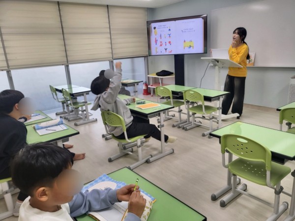 4차시 수업은 '단정한 마을의 단정한 시쿠리니씨'라는 책을 읽고 진행하는 수업이기에, 내용에 집중할 수 있도록 아이들이 한 명씩 돌아가면서 책을 읽도록 하였습니다. 한 페이지를 읽고 나면 그 페이지의 내용을 질문하는 방식을 통해 책에 집중하고 있는지, 내용을 이해했는지 계속해서 확인하며 진행하였습니다. 아이들이 책을 읽으면서, 등장인물과 마을 이름이 우리말이 아니기 때문에 잘 기억하지 못하는 모습을 볼 수 있었습니다. 그렇지만 발음이 어려운 독특한 이름을 보고 재미있어 하기도 했습니다.