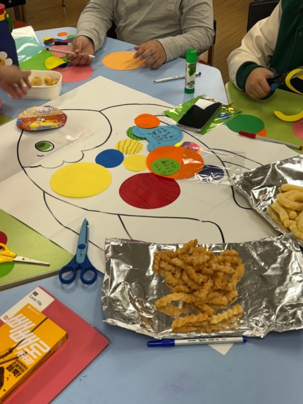 - 도서를 함께 읽어보며 나눔의 의미와 중요성을 알아보았다. 더불어 발표를 통해 나눔을 실천해본 경험이 있는지 이야기하였다. 이후 행복 물고기를 만들기를 진행하고 그에 대한 느낀 점을 나누었다.