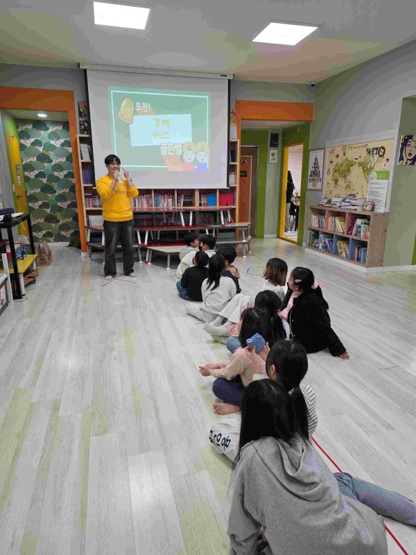 2교시 골든벨 활동 전에 지금까지 배웠던 내용에 대해 복습하는 시간을 가졌습니다. 1차시에 배웠던 물물교환부터 어려웠던 ‘이자’에 관련된 내용도 다시한번 학습했습니다. 그동안 배웠던 내용에 대해 많은 멘티들이 적극적으로 대답하는 모습을 보며 보람을 느꼈습니다.