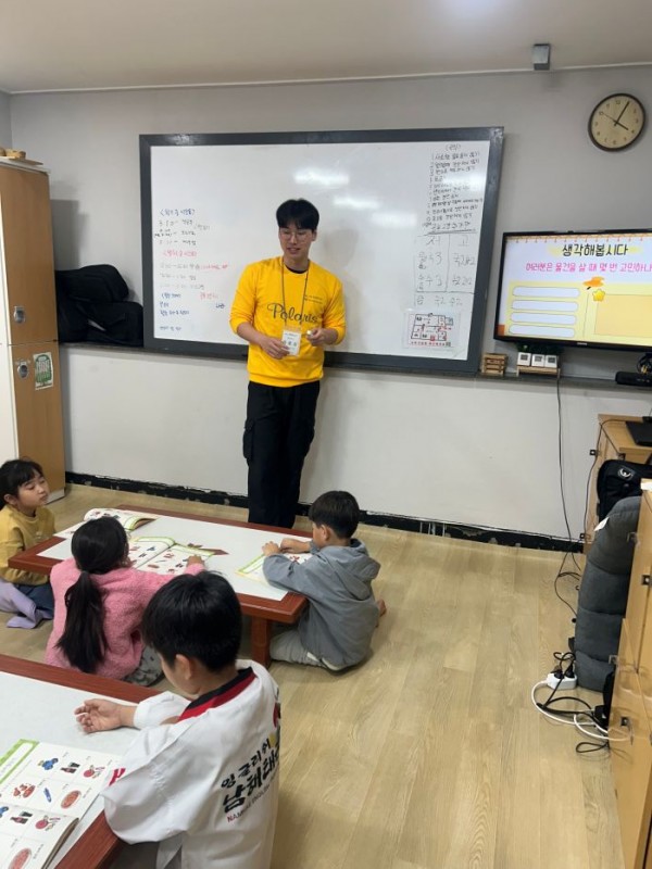 - 초반에는 많은 아이들 그 중에서도 고학년 친구들이 많이 있어 수업의 분위기를 잡아주었지만 이번 수업에서는 늦게 수업에 참가하는 친구들이 많아 학습에 적극적으로 참여해주는 친구들이 적어 수업의 분위기가 활기차지 않았습니다. 학생들의 수가 적을때에도 최대한 아이들의 집중력을 도와줄 수 있는 방법을 마련해야 겠다고 생각하였으며, 수업의 마무리가 밥 시간과 겹쳐 조금 흐지부지 되는 경향이 있어 끝맺음을 좀 더 확실하게 하도록 노력해야겠다고 느꼈습니다.