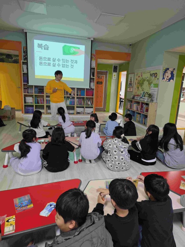 1교시에는 돈의 크기에 대해 알아보며, 저금의 중요성을 알려주기 위해 저금통 만들기 등의 활동을 진행하였다. 실물로 된 가짜돈을 보며, 아이들에게 실제 돈계산 등을 알려주며 아이들이 왜 돈이 필요한지. 돈을 벌기 위해서는 시간과 노력이 필요하다는 것을 알려주는 시간이었다. 또한, 자신이 저금을 해서 가지고 싶은 것을 저금통 만들기를 통해 알게 알게 하였다.