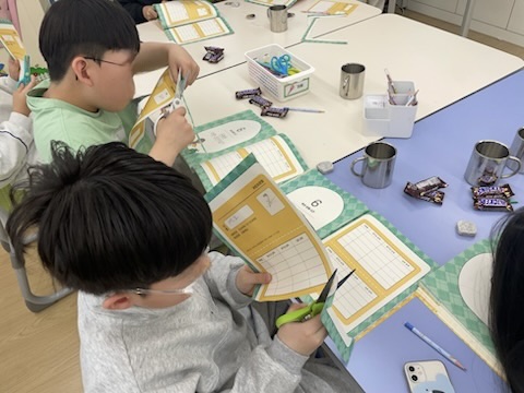 이번 수업부터는 수업 중간에 바로바로 간식을 나눠주지 않고 통장에 적립을 해 주면서, 그날 가져온 간식의 종류에 따라 본인이 마음에 들지 않는 간식을 가져온 날에는 수업에 집중하지 않던 아이들까지도 수업 참여를 유도할 수 있었습니다. 적립한 적립으로 간식을 구입할 수 있다는 것을 설명하고 마지막 시간에 다양한 종류의 간식을 가져오겠다고 약속하자 아이들이 수업에 더 열심히 참여해 뿌듯했습니다.