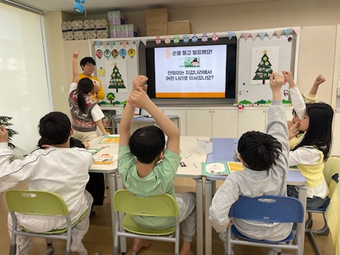 만원이 이야기를 진행한 후 이야기에 대한 퀴즈를 진행하여 아이들이 이야기 내용에 집중할 수 있도록 했습니다.