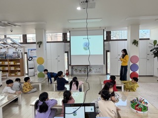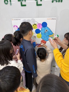 4) 교육내용 : 여덟번째 수업으로 이지연 단원이 주교사, 제가 보조교사를 맡아 수업을 진행했습니다. 메타버스 수업이 불가한 센터라 무지개 물고기 동화구연 수업으로 대체했습니다. 무지개 물고기를 다같이 읽고 난 후, 아이들의 소원을 색종이에 적거나 그려서 교구로 왔던 큰 물고기 종이에 붙여 꾸며보는 시간을 가졌습니다. 시간이 남아 수업 내용을 주제로 한 빙고 게임도 진행했습니다.