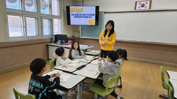 2교시 수업은 오혜진 단원이 수업을 진행하고, 권단희 단원이 보조해주셨습니다. 1교시 수업 때 배운 내용을 바탕으로 빙고게임과 그림일기 작성 활동을 진행했습니다. 교실에 있는 물건 중 돈으로 살 수 있는 물건을 가지고 빙고칸을 채운 후 서로 돌아가며 물건을 부르고 빙고게임을 진행했습니다. 더불어 돈을 사용했던 일을 각자 말해보고, 이를 바탕으로 그림일기를 작성해보는 시간을 가졌습니다.