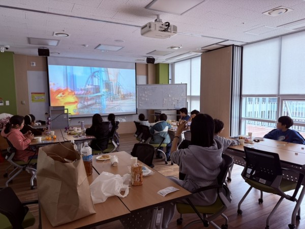 맛있는 과자와 재미있는 영화를 보며 수업을 마무리