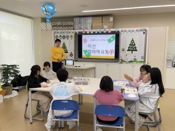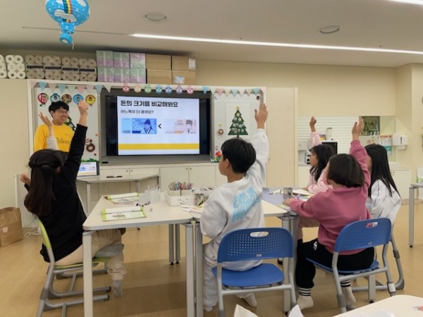 이번 시간에는 1,2주차 수업보다 많은 인원이 참여했습니다. 이번 차시에 처음 수업을 들은 학생들이 내용을 잘 따라오지 못할 것을 걱정했지만, 처음 진행한 아이들을 위해 연습 게임을 진행하기도 하고, 특히나 학습용 지폐로 돈의 크기를 맞추어 가져오면 사탕을 증정하는 게임을 진행할때 마지막까지 돈을 완성하지 못한 아이에게도 힌트를 주면서 모든 아이들이 게임을 성공할 수 있도록 하면서 게임을 진행했습니다.