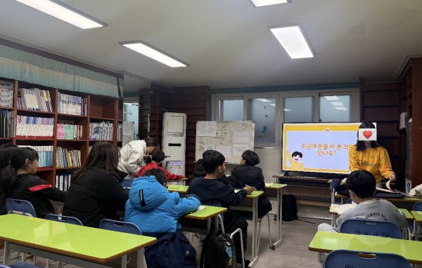 4) 교육 내용 : 1차시 돈으로 살 수 있는 것과 살 수 없는 것 이론 강의 (강사: 도솔미/ 보조강사: 이예림)