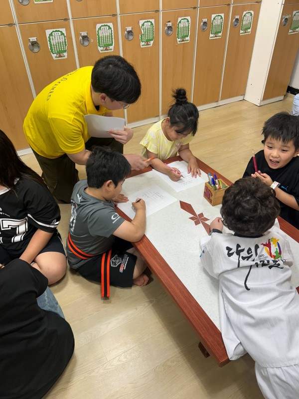 5) 소감 : 초등학교 1학년 부터 중학생들까지 많은 아이들이 있었지만 모든 아이들이 굉장히 조용하고 열심히 선생님의 수업을 들어주었습니다. 부족한게 많은 수업이었지만 열심히 들어주는 아이들이 너무 고마웠고 그런 아이들에게 보답하기 위해 다음 수업을 더 열심히 준비해야겠다고 느꼈습니다. 아이들의 수에 따라 활동의 역할이 달라지는 경우가 있어 이런 디테일 적인 부분에 대해서 생각지도 못한 상황이 발생했을때 2차적으로 실행할 수 있는 수업을 만들거나 대처할 수 있는 방법들을 많이 고민해봐야 겠다고 느꼈습니다. 또한 레이저 포인트의 배터리를 제대로 확인하지 못해 포인터가 제대로 작동하지 못해 수동으로 화면을 옮겨야 하는 정말 부족한 수업이었습니다. 다음 수업에서는 책임감을 가지고 더 열심히 준비하도록 하겠습니다.