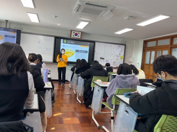 2교시 : 한미소 단원이 1교시 내용을 복습하고 퀴즈와 '경제 용어 빙고' 게임 활동을 진행하였습니다. 게임을 통해 여러 경제 용어를 학습할 수 있는 시간이었습니다.