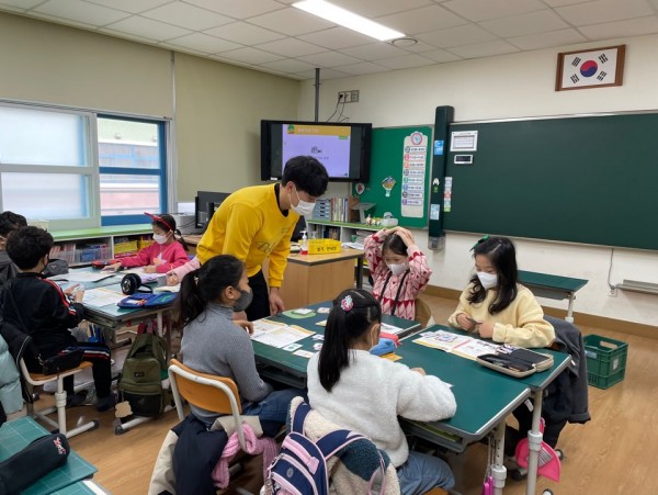 2교시: ‘물물교환 게임’ 설명 동영상을 시청하고 다시 한 번 설명하여 아이들의 집중도를 높인 상태에서 게임을 진행하였습니다. 아이들끼리 게임을 진행하면서도 1교시에 배웠던 물물교환을 설명하고 게임이 끝난 후 물물교환의 불편성 등을 강조하며 화폐의 중요성을 설명하고 수업을 마쳤습니다.