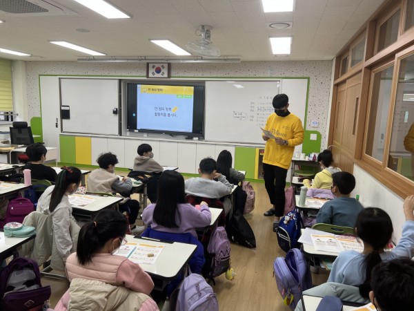 2교시에는 안수진 단원이 내용을 복습할 수 있도록 골든벨 퀴즈를 진행하고, 게임을 활용해 아이들이 재미있게 학습할 수 있었습니다.