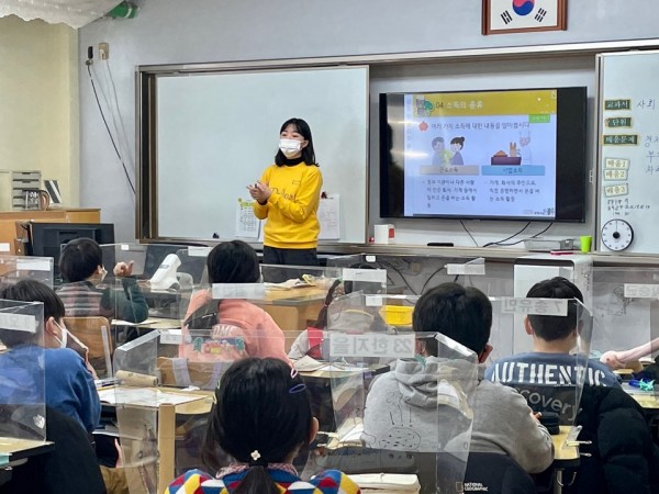 1교시: 정현빈 단원이 소득의 의미와 종류, 소득과 직업의 관계 그리고 다양한 직업을 소개하고 자신에게 맞는 직업을 찾기 위해는 어떠한 조건을 고려해야 하는지 알려주고 고민해보는 시간을 가졌습니다.