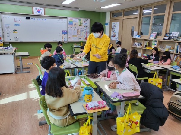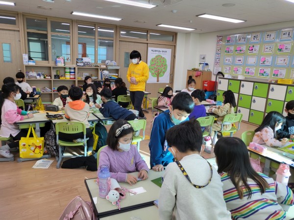 1교시 - 돈의 기능과 소득의 종류에 대해서 알려주었으며 저축의 장점과 은행 대표 저축 상품 3가지를 알려주었습니다. 학생들이 모르는 단어는 학생들의 눈높이를 맞춰 설명했고, 학생들의 소비 경험이나 저축 경험을 질문하여 대답할 수 있도록 하여 학생들의 참여를 유도했습니다.