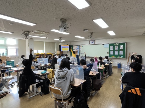 고지민 단원이 1교시에 수업한 내용에 대한 골든벨 퀴즈를 진행한 후 '신기한 돈, 합리적 소비'에서 배운 돈의 기능과 다른 나라의 화폐에 대한 '돈카드' 게임을 진행했습니다. 수업을 마무리하면서 그동안 배웠던 내용을 복습하고 수업에 대한 소감을 발표하는 시간도 보냈습니다.