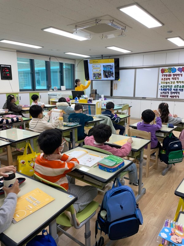 1교시 - 소득과 저축의 개념, 종류 그리고 필요성에 대해 수업을 진행하였습니다. 아이들의 저축 경험을 공유하게 하며 흥미를 이끌었습니다. 또한 저축을 한 단어로 표현해보는 활동을 진행하였는데 미래, 희망, 생각 등 아이들의 창의적인 답변이 돋보였습니다.