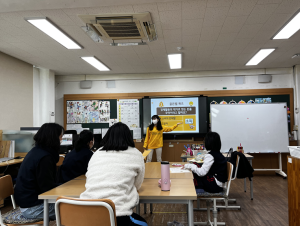 2교시 : 강수지 단원이 수업 내용을 바탕으로 골든벨 퀴즈를 진행하여 학생들의 이해를 도왔습니다. 또한 돈을 벌어요 게임을 통해 소득의 개념을 상기시킬 수 있었습니다.