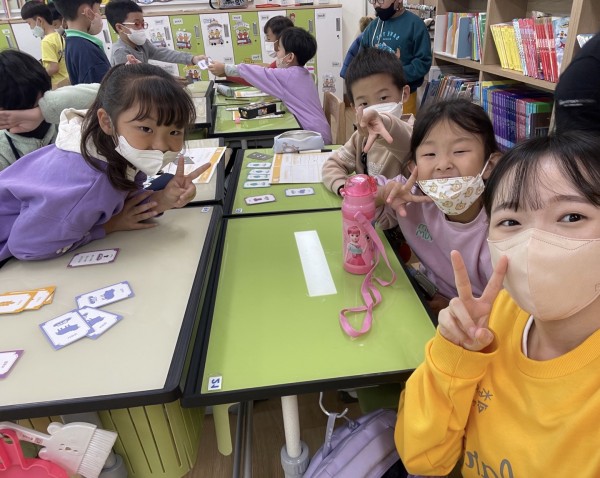 2교시- 1교시 내용을 바탕으로 골든벨 퀴즈를 진행하였습니다. 모든 아이들이 손을 들 정도로 이해도가 높으며 참여가 좋았습니다. 또한 물물교환 게임을 실시하였는데, 미션 수행에 많은 흥미를 보였습니다.