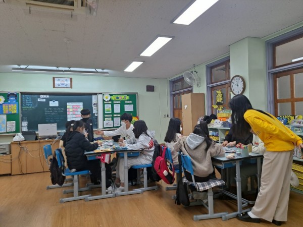 2교시 - 주선영 단원이 진행했습니다. 앞서 배운 경제 개념들을 토대로 모둠 활동을 통해 보드게임을 진행하였습니다. 이후 마무리 한 뒤 간단하게 개념 복습을 하며 오늘 배웠던 내용을 상기하였습니다.