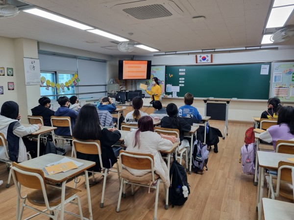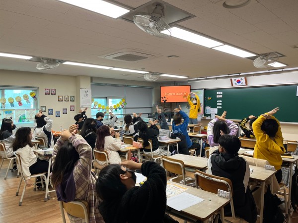 <1교시> 김가현 단원이 진행했습니다. 교재 <금융을 알고 투자를 해요!>를 사용해 수업을 진행했습니다. 수업 시작 전에 선생님에 대한 간단한 퀴즈를 맞춰보며 아이들과 친해지는 시간을 가졌고, 이후에는 수업 중 지켜야 할 약속과 학습목표에 대해 알아봤습니다. 우선 금융이 무엇인지, 금융기관에는 어떤 것들이 있는지 설명하며 학교 근처의 금융기관을 지도로 찾아보는 시간을 가졌습니다. 또한 실제 개인 통장과 주식 계좌를 보여주며 저축과 투자의 장단점을 쉽게 이해할 수 있도록 설명했습니다. 마지막에는 수업 내용을 복습할 수 있는 골든벨 퀴즈를 함께 풀어보며 마무리했습니다.