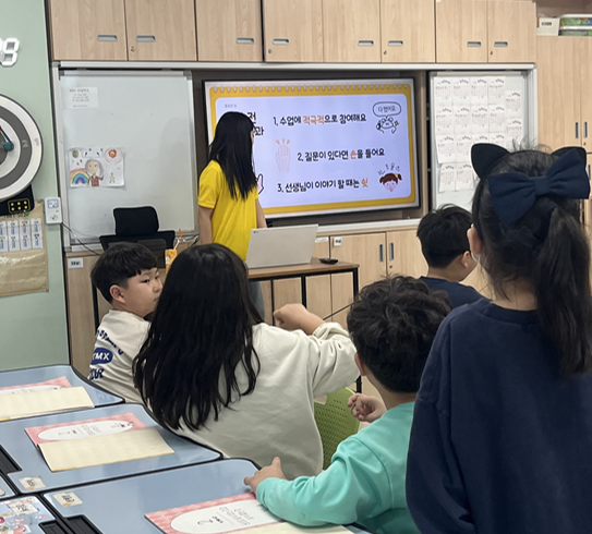 차시 마지막에는 그림일기 쓰기 활동을 진행하였다. 사전에 학생들이 그림일기를 잘 쓰지 못한다는 이야기를 들어 다소 염려되었으나, 예상과 달리 대부분의 학생들이 집중하여 성실히 참여하는 모습을 보여주었다. 특히 한 학생은 글을 끝까지 작성하고 그림까지 꼼꼼하고 예쁘게 그려낸 모습이 인상 깊었다. 이를 통해 학생들이 충분한 시간을 보장받으면 스스로 표현할 수 있는 능력을 발휘할 수 있다는 사실을 다시금 깨달을 수 있었다. 앞으로는 이러한 긍정적인 경험을 바탕으로, 학생들이 자신감을 가지고 다양한 표현 활동에 적극적으로 참여할 수 있도록 지도해야겠다고 느꼈다.