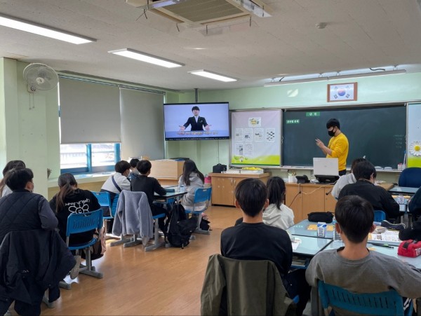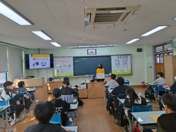 2교시 - 이태림 단원이 진행했습니다. 크라우드 펀딩이라는 주제에 대하여 설명을 한 후, 예시를 들어 학생들에게 전달하였습니다. 설명을 들은 후 모둠을 나눠 팀 활동으로 펀딩을 직접 구상해보고 발표를 해보며 수업을 마무리 하였습니다.