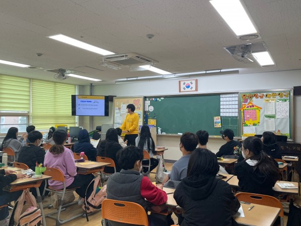 김현성 단원이 1교시를 진행했습니다. 1교시에서는 금융의 뜻과 금융기관에 대해서 설명을 하였고, 보험회사, 신용협동기구, 신용카드회사 등의 조금의 어려울 수 있는 개념들도 눈높이에 맞추어 쉽게 설명을 해주었습니다. 학생들에게 최대한 발표를 많이 하게 하여 소통할라고 하였으며, 배운 내용과 관련한 퀴즈를 통해 학생들의 흥미를 이끌어내었습니다.