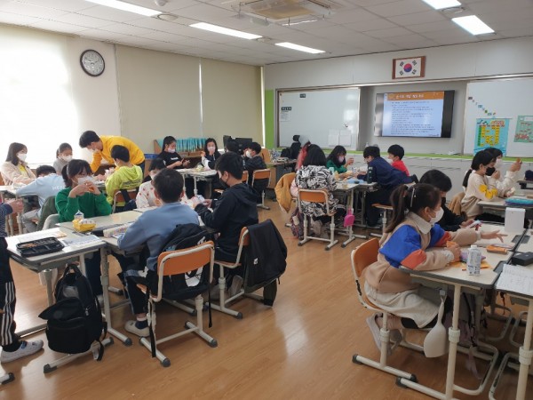 1교시: 돈의 4가지 기능(교환수단, 가치비교수단, 가치저장과 이전수단, 대가지불수단)을 통해 돈에 대한 지식을 설명하였습니다. 또한 환전과 환율에 대한 설명을 통해 세계의 다양한 화폐를 소개하였습니다. 마지막으로 예산과 결산을 세워 합리적인 소비를 할 수 있게 교육을 진행하며 용돈 기입장에 대한 중요성을 강조하였습니다. 그리고 질문 및 발표를 통한 수업참여를 유도하였습니다.