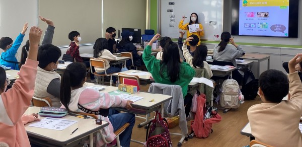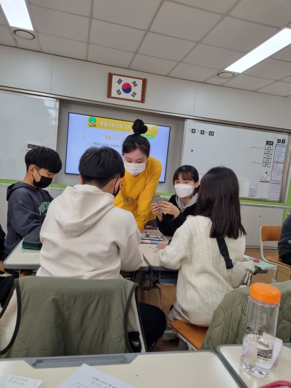 2교시 - 수업에 들어가기전 1교시에 배운 내용(돈의 역사)을 복습후 '물물교환'게임을 진행하였습니다. 교실을 돌아다니며 학생들이 모두 게임에 잘 참여할 수 있도록 지도하였으며 3~4번 게임 진행 하였습니다. 게임이 끝난 후 물물교환의 불편한점에 대해 알아보고 지금까지 돈이 발전해온 과정에 대해 마지막 설명을 하며 수업을 마무리 하였습니다.