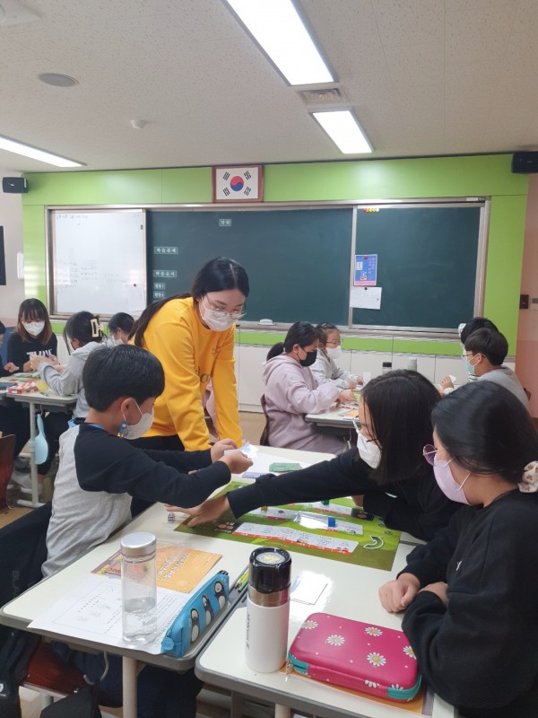 2교시: 1교시 배운 내용을 복습한 후, '돈을 벌어요' 게임과 '돌려라 저축판' 게임을 진행하였습니다. 게임을 통해 소비와 저축의 개념을 다시 한 번 이해할 수 있었으며, 게임이 끝난 후 어떤 저축상품에 투자하고 싶은지 이야기를 하며 수업을 마무리 하였습니다.