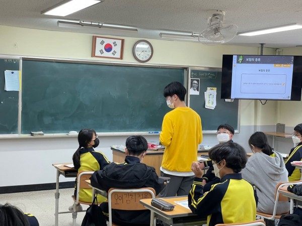 : 1교시 - 이석희 단원이 진행했습니다. 점심시간 직후인 것을 고려해 선생님에 대한 간단한 퀴즈로 관심을 유발했습니다.