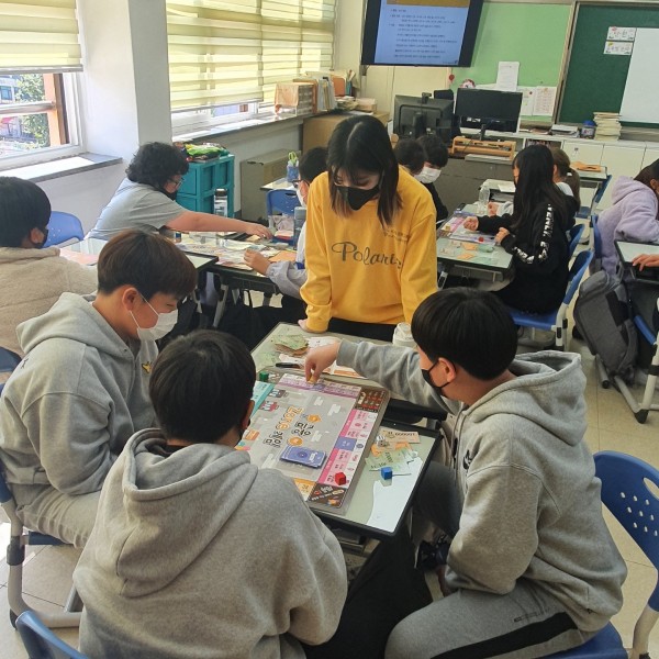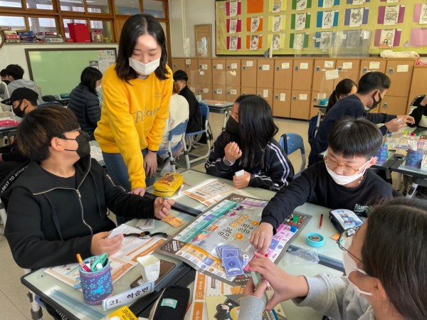 2교시: 정현빈 단원이 이전 교시에서 배웠던 내용을 간단히 복습시키고 골든벨 퀴즈를 진행했습니다. 12문제나 되어 설명할 부분이 많았으나, 잘 지도해주어 학생들이 재미있게 퀴즈에 참여했습니다. 또한, 금융존 게임에서 헷갈릴만한 부분을 잘 짚어주어 학생들이 원활하게 게임을 진행했습니다.