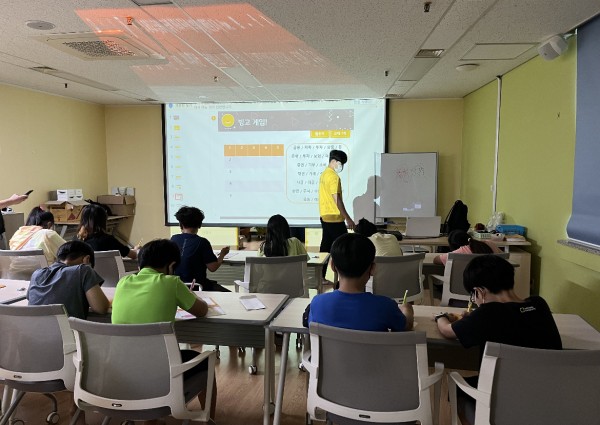 2교시 : 최민준 단원이 1교시에 배웠던 내용을 바탕으로 복습을 했고 골든벨 퀴즈를 진행하여 아이들의 이해를 도왔습니다. 또한 배운 단어를 바탕으로 빙고게임을 진행했습니다.