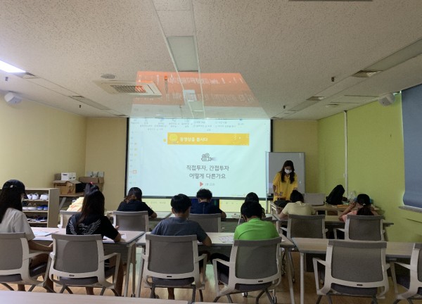 1교시 : 박수진 단원이 금융의 의미와 금융기관의 종류와 각각의 역할에 대한 수업을 진행했습니다. 그리고 저축과 투자의 차이점과 직접투자와 간접투자의 차이점에 대한 수업을 진행했습니다.
