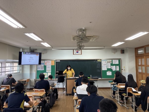 2교시: 이상헌 단원이 1교시에 <합리적 소비와 자산관리> 교재를 통해 학습한 내용을 마지막으로 한번 정리해보고, 이를 바탕으로 골든벨 게임과 교구활동을 진행했습니다. 활동을 마친 뒤, 설문지 작성을 하고 질의응답을 통해 학생들이 수업과 관련하여 궁금했던 부분을 알아갈 수 있도록 하였습니다. 이후 사진을 촬영하고 수업을 마쳤습니다.