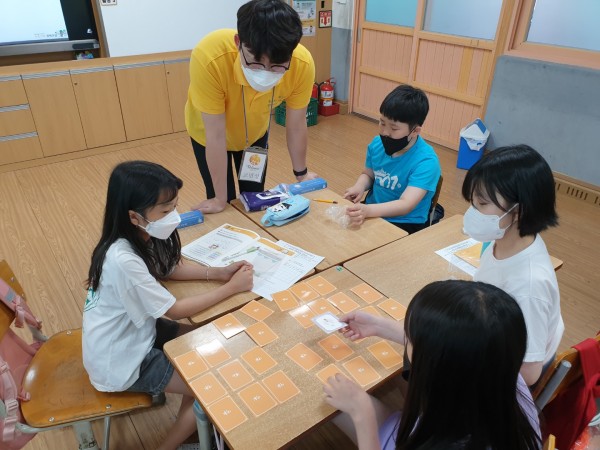 2교시: 모둠으로 나누어 직업 카드 놀이와 빙고 게임을 하였습니다. 게임 활동을 하면서 모든 모둠이 즐겁게 게임에 참여하였습니다. 단원들은 각 모둠을 돌아다니며 학생들이 원활히 참여할 수 있도록 도와주었습니다.
