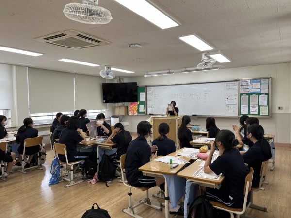 수업을 시작하기 전, 글자 겹치기 게임을 통해 아이들과 ice breaking 하는 시간을 가졌습니다. 첫 번째 교시에는 금융의 정의와 다양한 금융기관의 종류와 역할, 저축의 필요성, 은행의 대표적인 저축상품, 투자와 저축의 차이점, 현명한 투자 방법 등에 대해 이론 수업을 진행했습니다. 영상 자료, 교재의 빈칸 채우기 활동, 간단한 판서 등과 함께 쉽게 이해할 수 있도록 수업을 진행했고, 이를 복습하는 골든벨 퀴즈 시간도 가졌습니다.