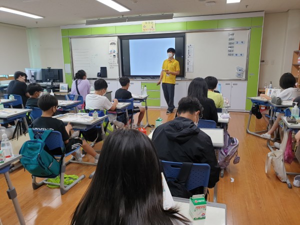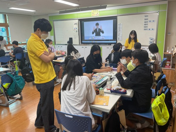 2교시: 5명씩 5모둠으로 나누어 금융 zone 게임을 진행했습니다. 게임 활동을 하면서 모든 모둠이 즐겁게 게임에 참여하였습니다. 단원들은 각 모둠을 돌아다니며 학생과 적절히 상호작용하고 게임에 대한 질문에 답을 하며 원활한 게임의 진행을 도왔습니다. 게임을 마친 이후에는 게임에서 1등을 한 친구를 가려 상품을 증정하였습니다.